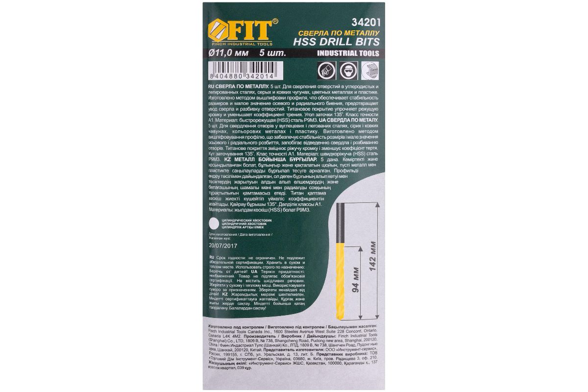 Цилиндрический хвостовик. Материал: быстрорежущая (HSS) сталь c титановым покрытием, вышлифованный профиль. Упаковка: картонный конверт.