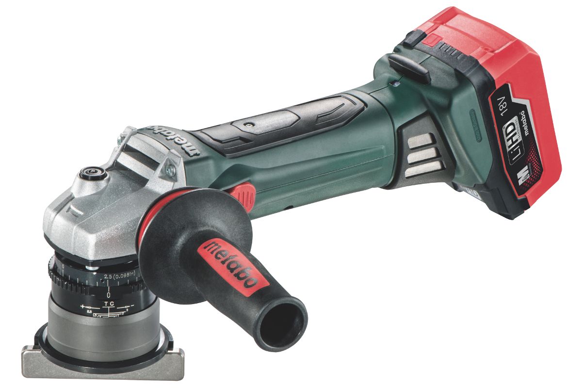 Объем поставки по 2 твердосплавные режущие поворотные пластины (45° фаска, радиус R2, радиус R3), 2 крепежных винта для пластин, направляю- щий упор, отвертка TX 15, дополнительная рукоятка Metabo Vibra Tech (MVT), пылевой фильтр, Metaloc, 2 аккумуляторных блока Li-Power (18 В/5,2 А*ч), зарядное устройство ASC 30-36 В «AIR COOLED»