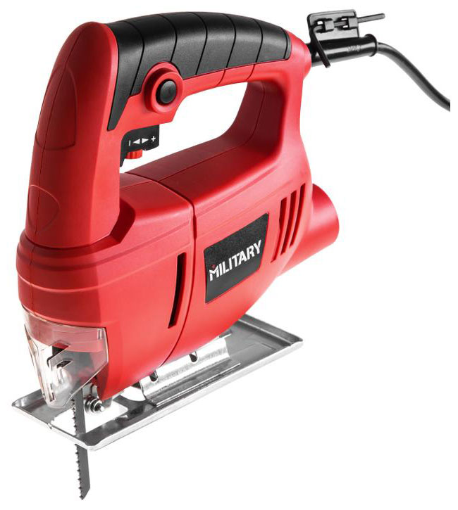 MILITARY JS500 – лобзик для домашнего мастера. Пилит дерево, металл, пластик, ламинат и другие материалы. Делает распилы вдоль, поперек и под углом.