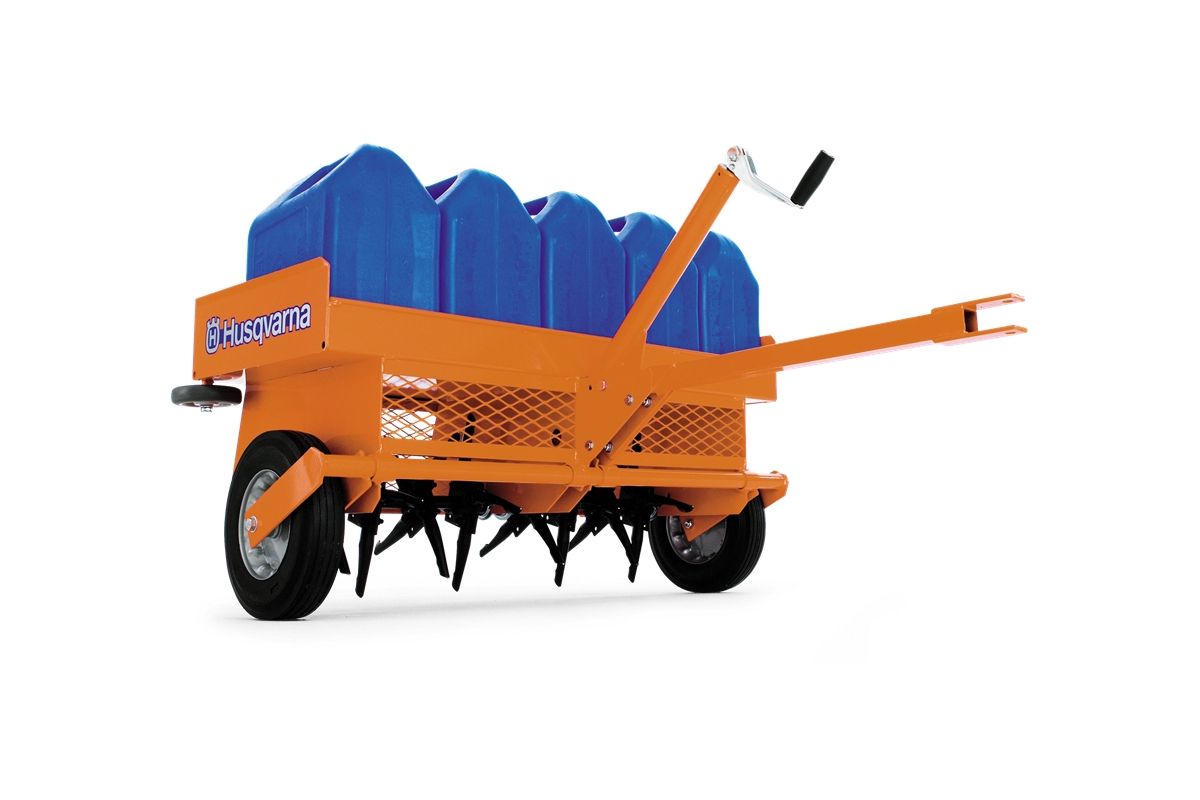 Аэратор, буксируемый трактором с двигателем мощностью не менее 16 л.с., ширина аэрации 36'', 32 пустотелые трубки из закаленной стали, производительность до 2,9 акра в час.