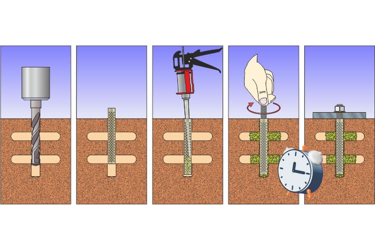 - Применяется для монтажа шпилек, болтов и арматуры в просверленные отверстия;