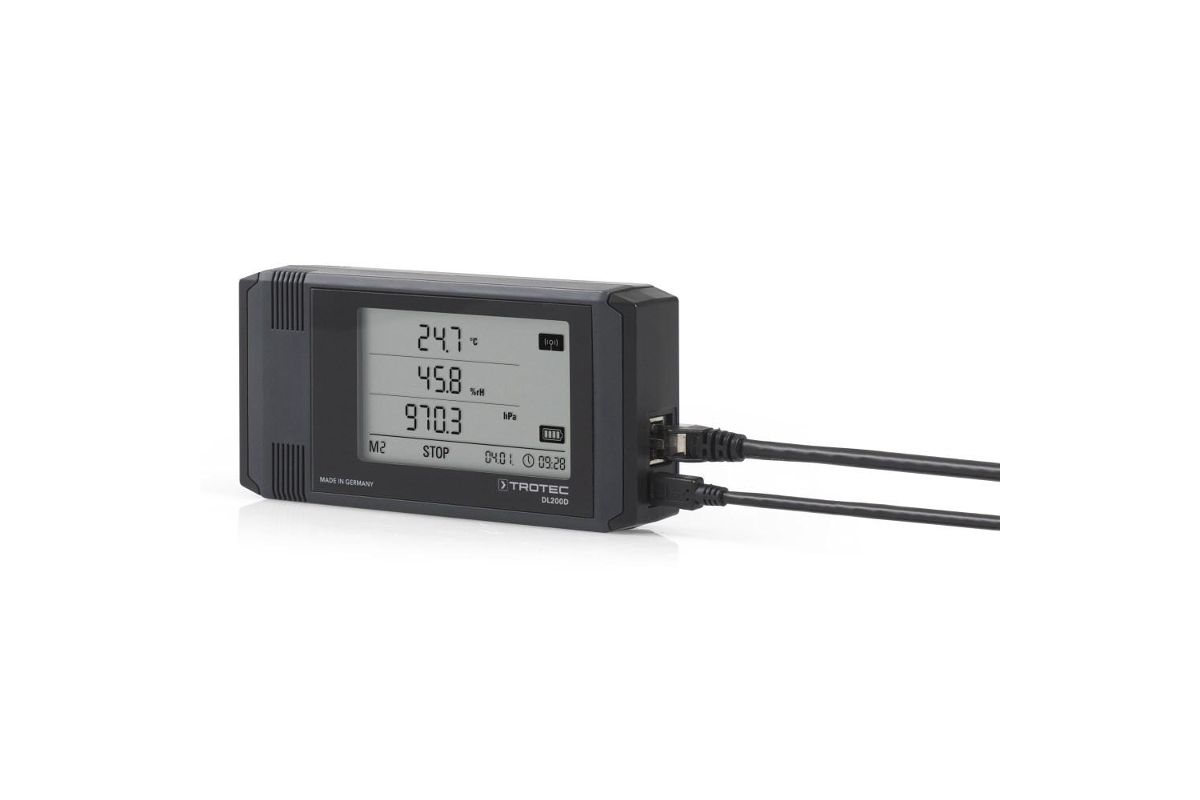 Логгер DL200D - профессиональный регистратор данных. Помимо данных о температуре и влажности воздуха, встроенные датчики DL200D также определяют текущие значения атмосферного давления. Благодаря гибкой комбинации отображения данных в реальном времени, долговременного обнаружения и регистрации всех измеренных значений DL200D является важным аксессуаром для всех прецизионных измерений, особенно для калибровочных и испытательных лабораторий.