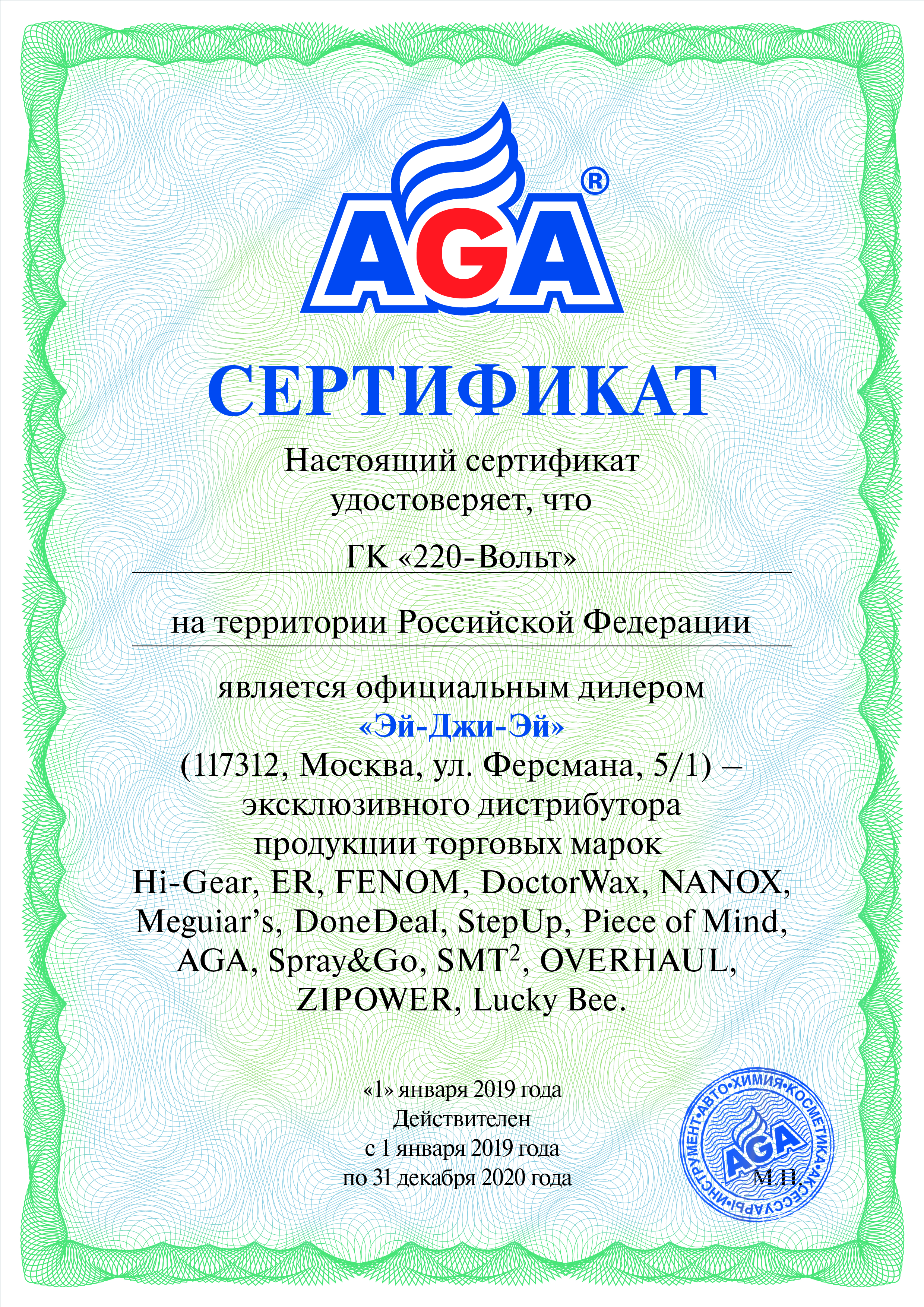 Динамично развивающийся российский бренд AGA создает товары для ухода за автомобилем. В штате компании работают механики, инженеры, экологи, технологи, дизайнеры и химики. С начала 90-х годов ведется производство продукции, повышающей эксплуатационные характеристики авто. В 1994 году открыт специальный учебный центр, в котором AGA самостоятельно готовит себе специалистов. А в 1995 году начато продвижение в специализированной сети «Автомаг» и на АЗС по всей стране.